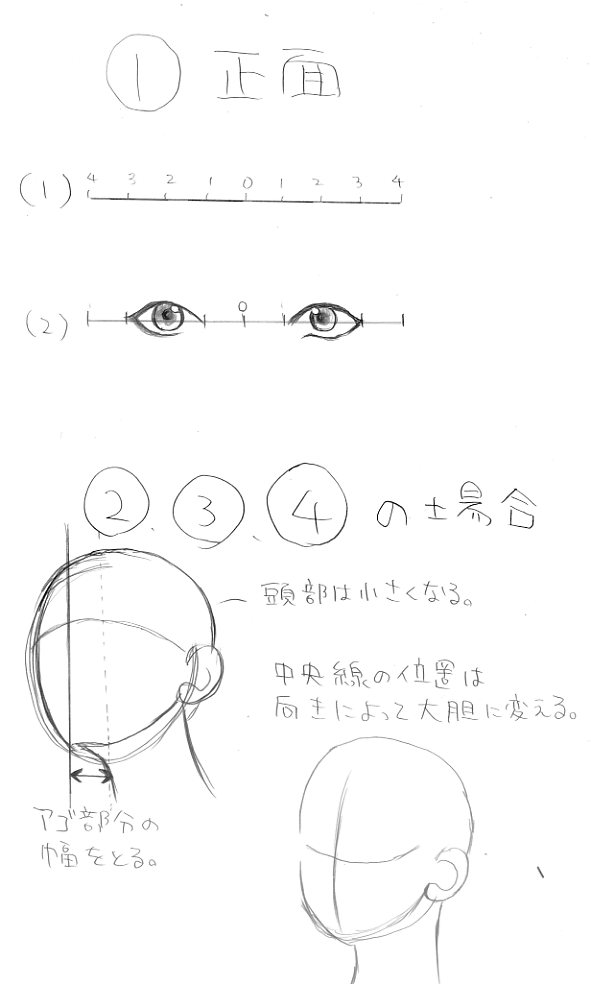 目は大体1と3の間にバランスよく描くようにするとのコト